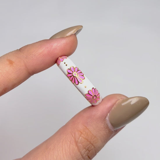 Soft pink florals on white enamel — a ring that captures spring in full bloom. Elegant, feminine, and timeless. It's Anti-tarnish, Waterproof, and Adjustable